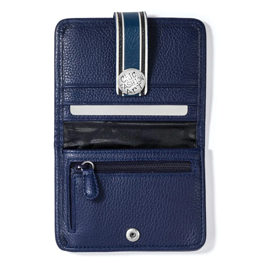 In wonderful shades of blue, highlighted with Italian navy blue leather, this wallet will match every pair of denim jeans you own, and compliment every other color in your closet.