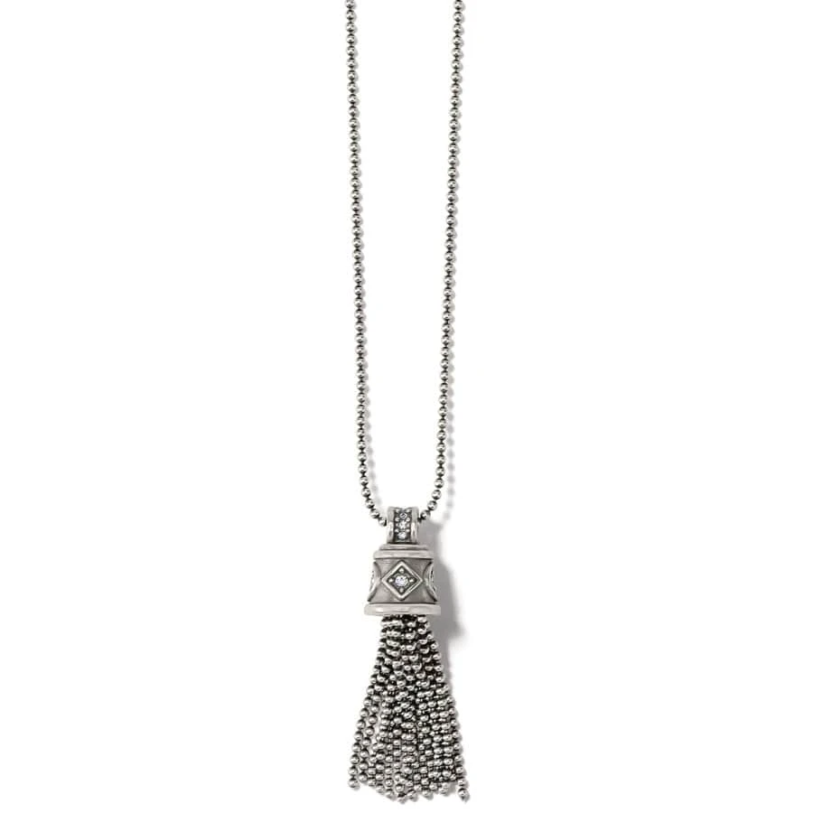 An elegant mini tassel design with Meridian Zenith elements and a fine ball chain gives this necklace with glass stones set in fine bezels a delicate, feminine and modern look.