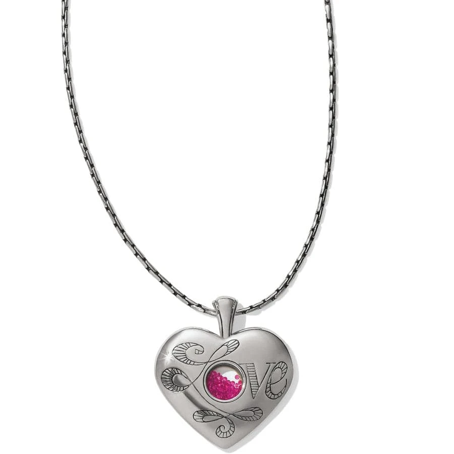 The word “Love” is etched as though hand-lettered on the front of this heart pendant, and at its center, 40 faceted fine quality crystals are framed between two clear windows. They will fill your heart with joy–just give them a little shake and see!