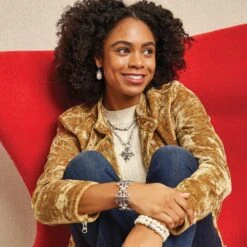 This pearl-adorned cross necklace combines classic design with a beautiful symbol of faith.